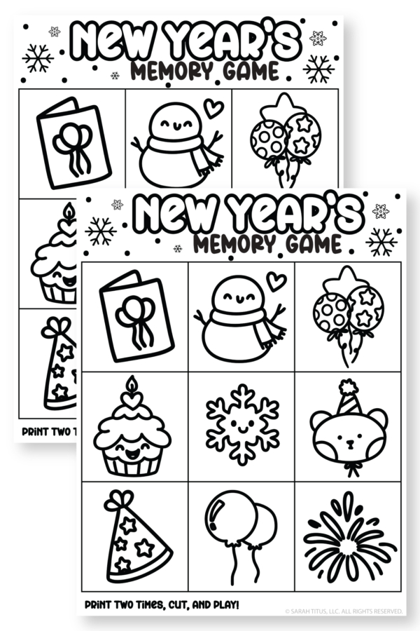 New Year’s Coloring Memory Game Free Printable for Kids
